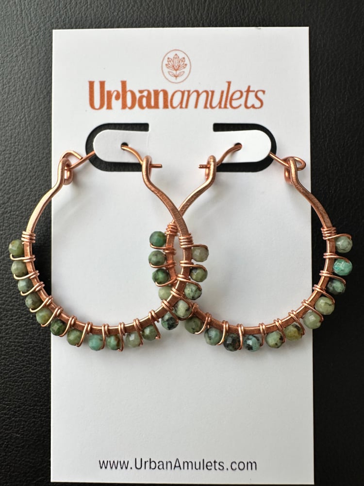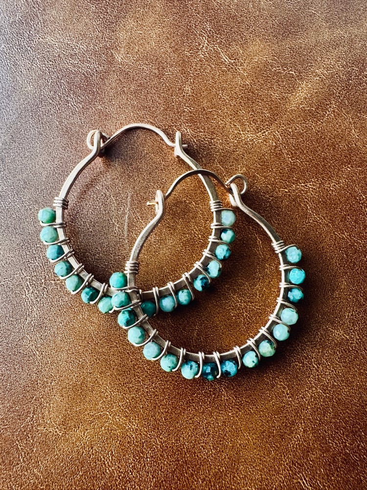African Turquoise crystal hoop earrings, gift for her, gift for girlfriend, natural gemstone jewelry, wild natural jewelry, birthday present, boho earrings, bohemian jewelry, beaded gemstone jewelry, bridesmaid jewelry, natural stone jewelry, statement earrings, statement jewelry, statement earrings, boho bride