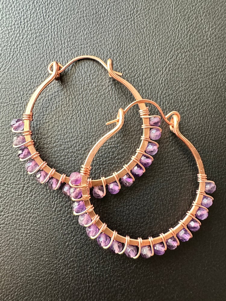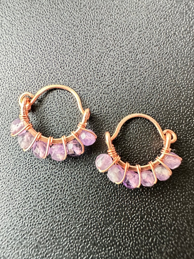 Amethyst crystal hoop earrings, February birthstone earrings, gift for her, gift for girlfriend, natural gemstone jewelry, wild natural jewelry, birthday present, boho earrings, bohemian jewelry, beaded gemstone jewelry, bridesmaid jewelry, natural stone jewelry, statement earrings, statement jewelry, statement earrings, boho bride, Aquarius, Pisces