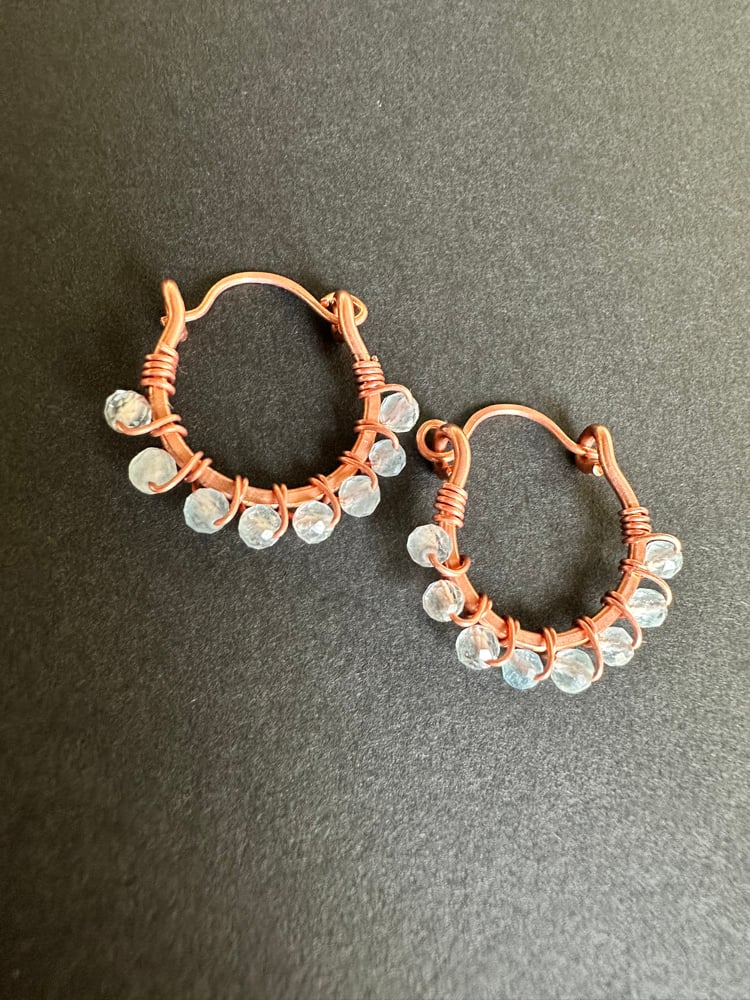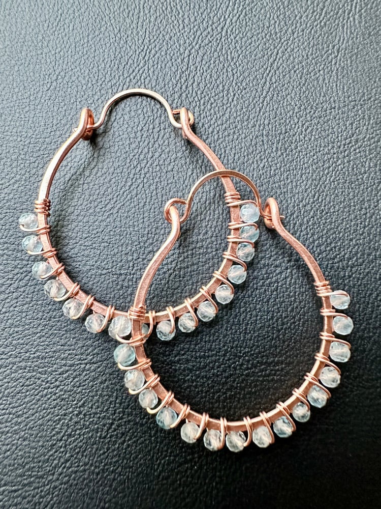 Aquamarine crystal hoop earrings, March birthstone earrings, gift for her, gift for girlfriend, natural gemstone jewelry, wild natural jewelry, birthday present, boho earrings, bohemian jewelry, beaded gemstone jewelry, bridesmaid jewelry, natural stone jewelry, statement earrings, statement jewelry, statement earrings, boho bride