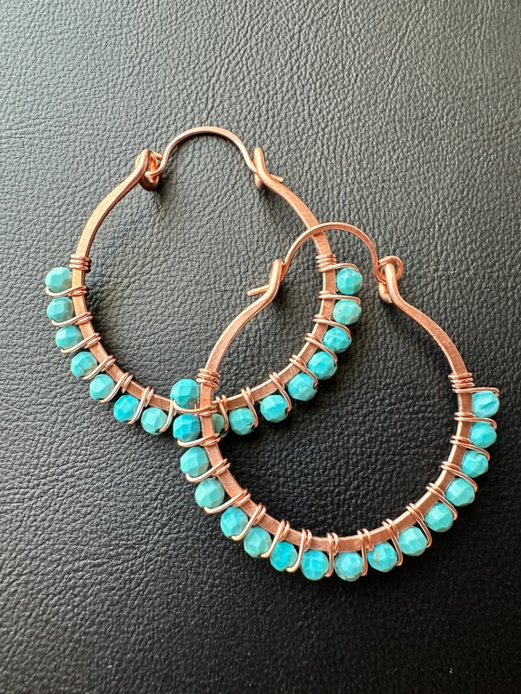 Turquoise crystal hoop earrings, December birthstone earrings, gift for her, gift for girlfriend, natural gemstone jewelry, wild natural jewelry, birthday present, boho earrings, bohemian jewelry, beaded gemstone jewelry, bridesmaid jewelry, natural stone jewelry, statement earrings, statement jewelry, statement earrings, boho bride